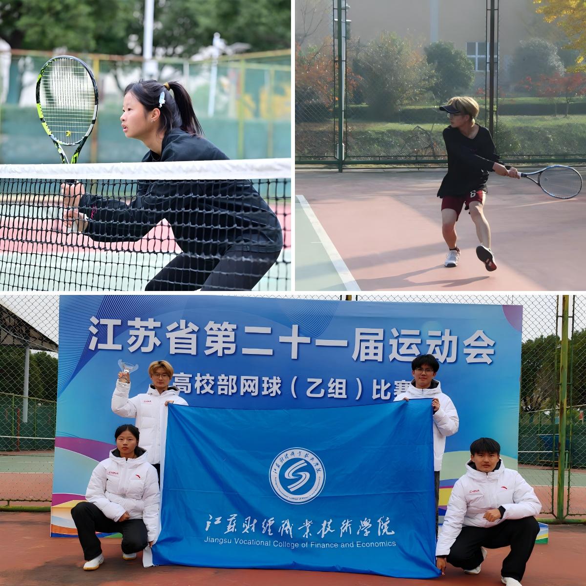 本次比赛经省政府批准,由省教育厅、省体育局联合主办,江苏建筑职业技术学院承办,汇聚了全省31所高职院校的151名运动员同场竞技。我校网球队由体育工作部刘春晓、王军两位老师担任教练,我校校友赵国名担任辅教,队员包括25级大数据与会计专业孙梓程、23级大数据与会计专业毕蕾洁、24级视觉传达专业刘磊、23级现代物流专业田欣等同学。