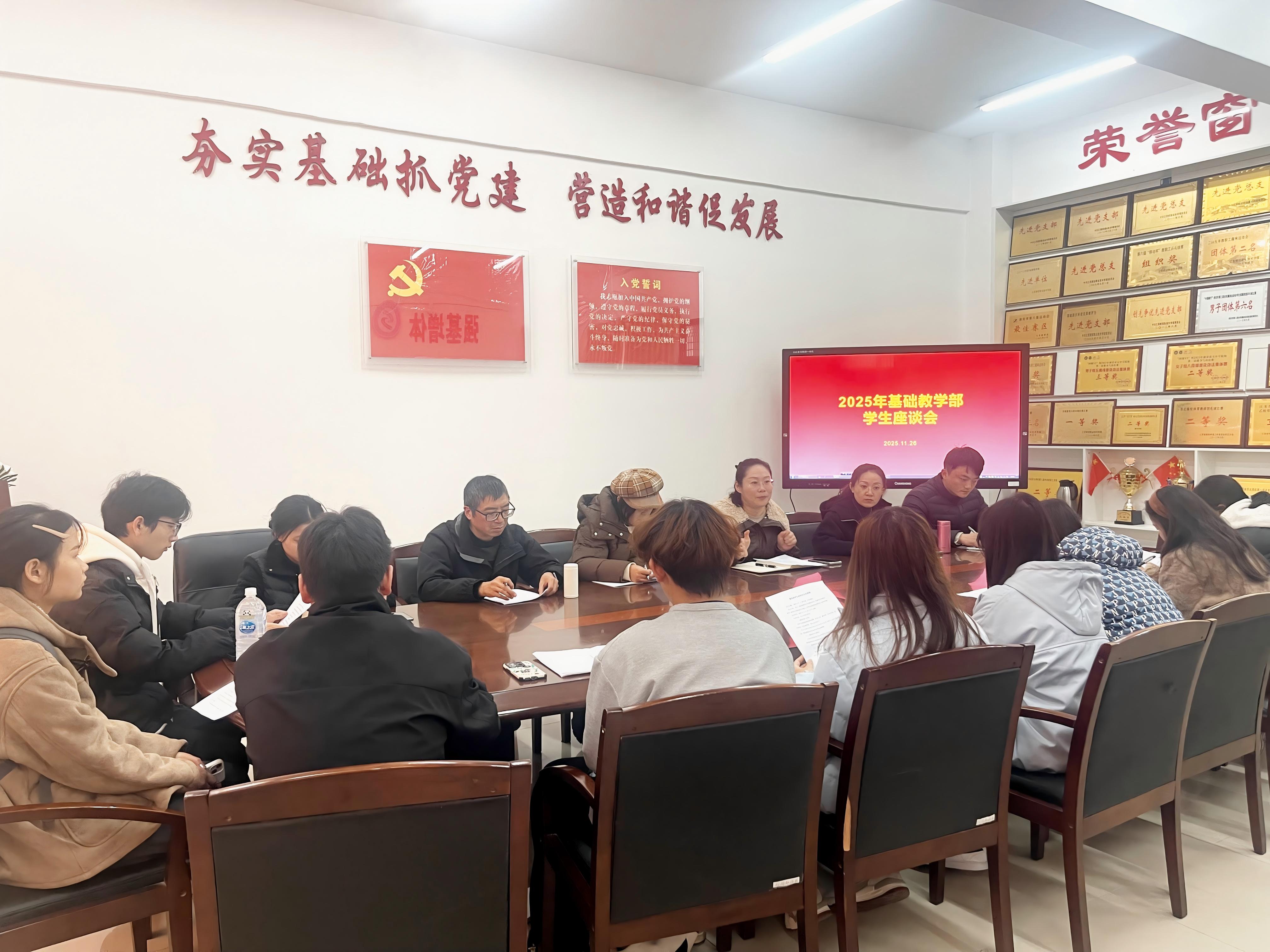 为深入了解学生的整体状况,持续提升教育教学质量,2025年11月26日下午2:00,以“倾听心声,汇聚智慧,共促成长”为主题的基础教学部学生座谈会在知行楼211会议室顺利召开。基础教学部副主任董菁主持会议,各教研室主任参会。座谈会旨在搭建学校与学生之间直接沟通的桥梁,广泛收集同学们在教学、管理、服务等方面的宝贵意见,共同为学生创造更优质的学习与成长环境。