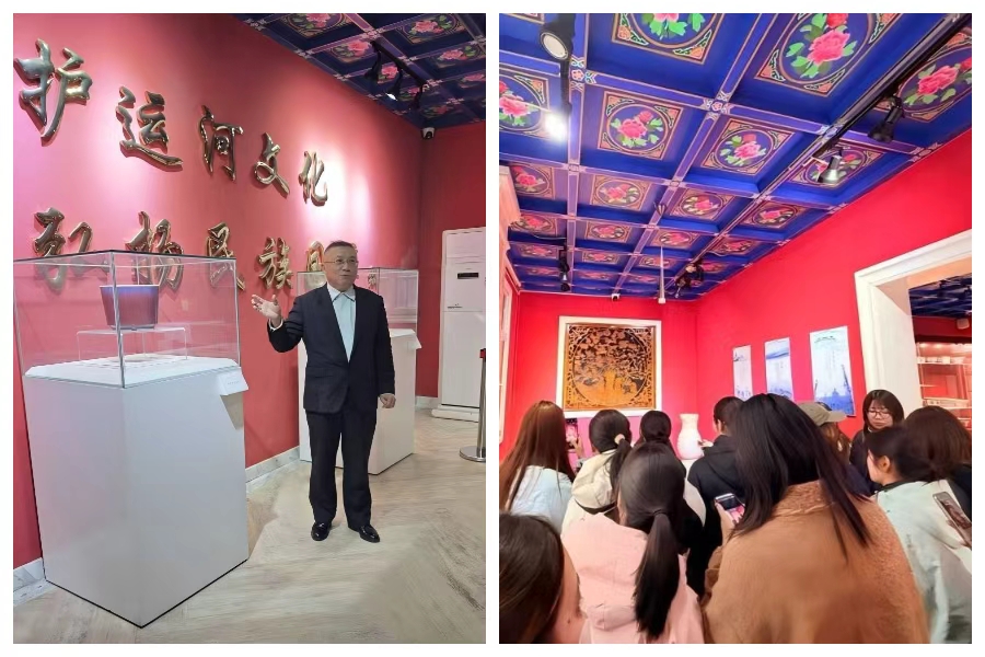 步入博物馆,红墙映照着鎏金标语"守护运河文化,弘扬民族国粹",浓厚的文化氛围扑面而来。博物馆馆长葛强亲自担任讲解员,带领同学们开启这场穿越时空的文化之旅。