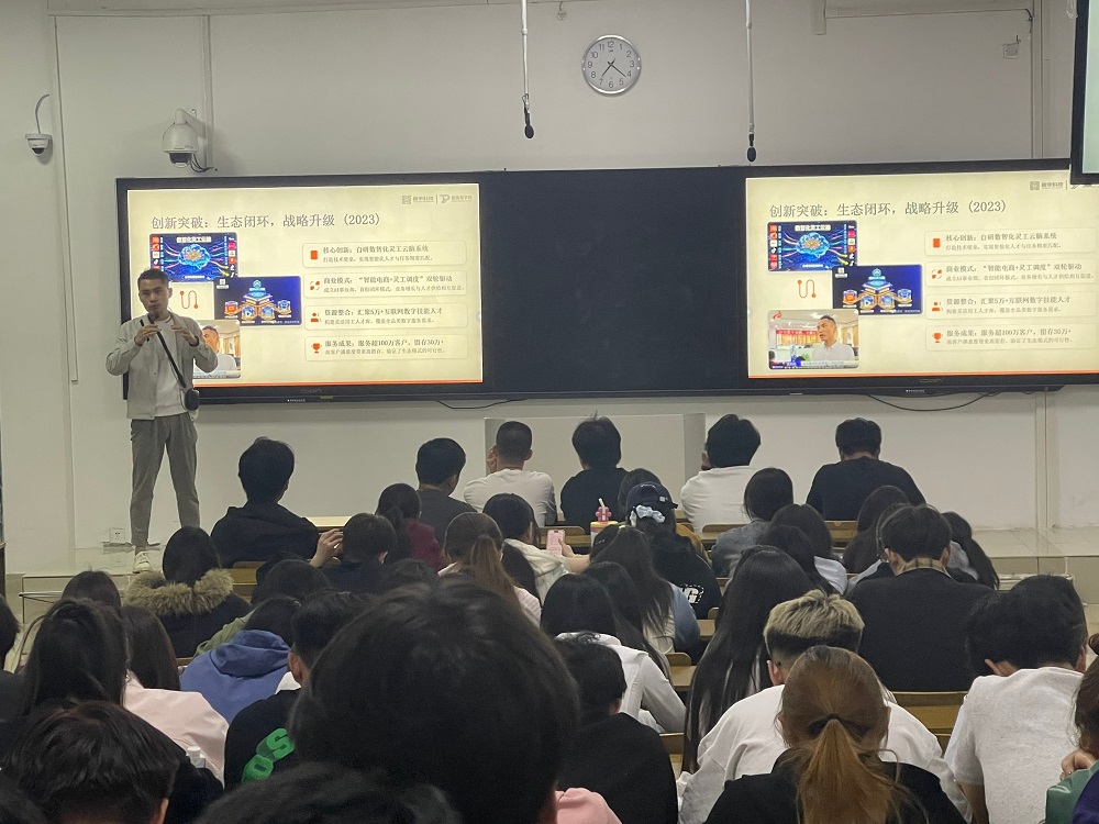 王柏融为我校2018届优秀校友,在校求学期间便胸怀创业理想,敢闯敢试,早早开启创业探索之路,经过在智能化商务服务领域十年的坚守打拼,他最终实现了企业的高质量发展。在讲座中,王柏融结合自身创业经历,围绕创业初心选择、行业赛道研判、市场机遇把握、团队组建管理、创业中的挫折挑战及风险防控等多个维度,用朴实真挚的语言和鲜活生动的案例,倾情分享了自己从萌生创业想法、不断摸索尝试,到精准洞察行业风口、深耕赛道实现稳步发展的完整历程。此外,他还立足当下智能化发展趋势,介绍了AI赋能下OPC创业新范式,勉励同学们紧跟时代潮流、勇于突破自我,主动拥抱创业新机遇,脚踏实地走好创新创业之路。最后的互动交流环节,同学们围绕创业方向选择、创业资金筹备等关心的问题踊跃提问,将现场气氛推到了高潮。